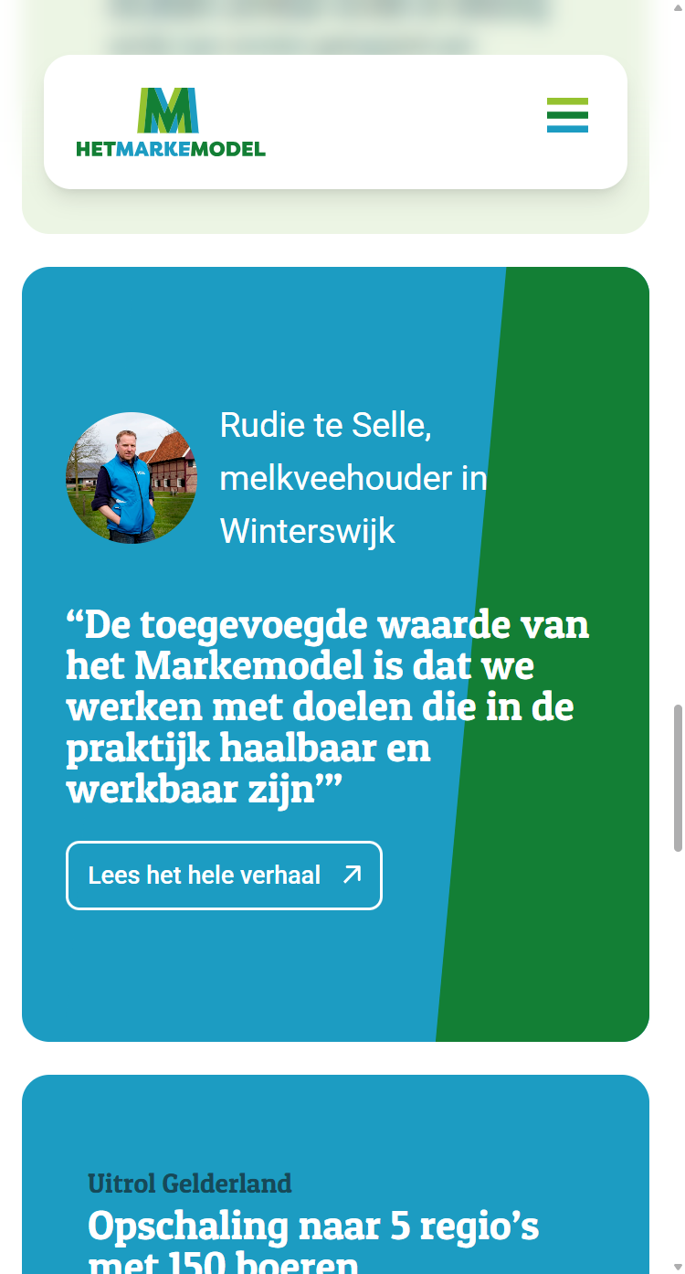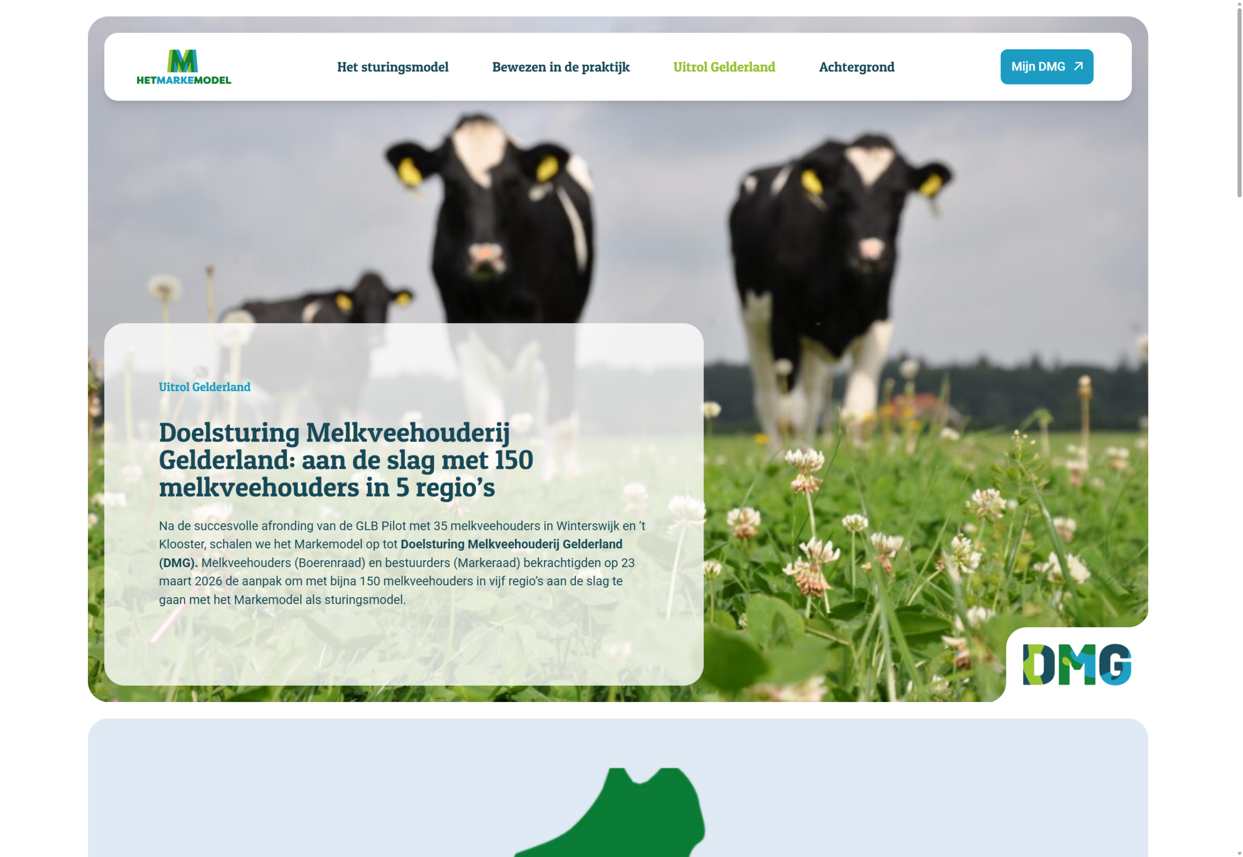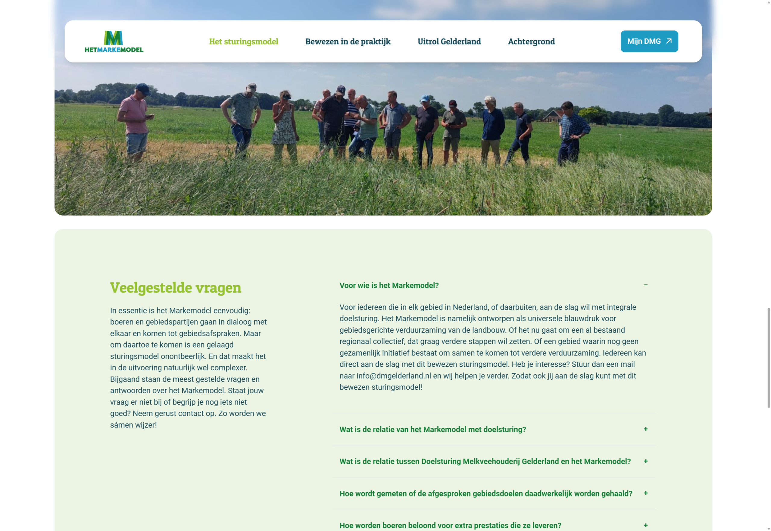 Voor Markemodel lag de uitdaging in het vertalen van een complex sturingsmodel voor duurzame gebiedsontwikkeling naar een compacte, begrijpelijke website. Vanuit een sterke webstrategie en een functioneel ontwerp is de basis gelegd, die door Bureau Kamp is vertaald naar een visueel design. De technische uitwerking zorgt voor een gelaagde ervaring: de bezoeker begint bij de kern en duikt steeds dieper de materie in.